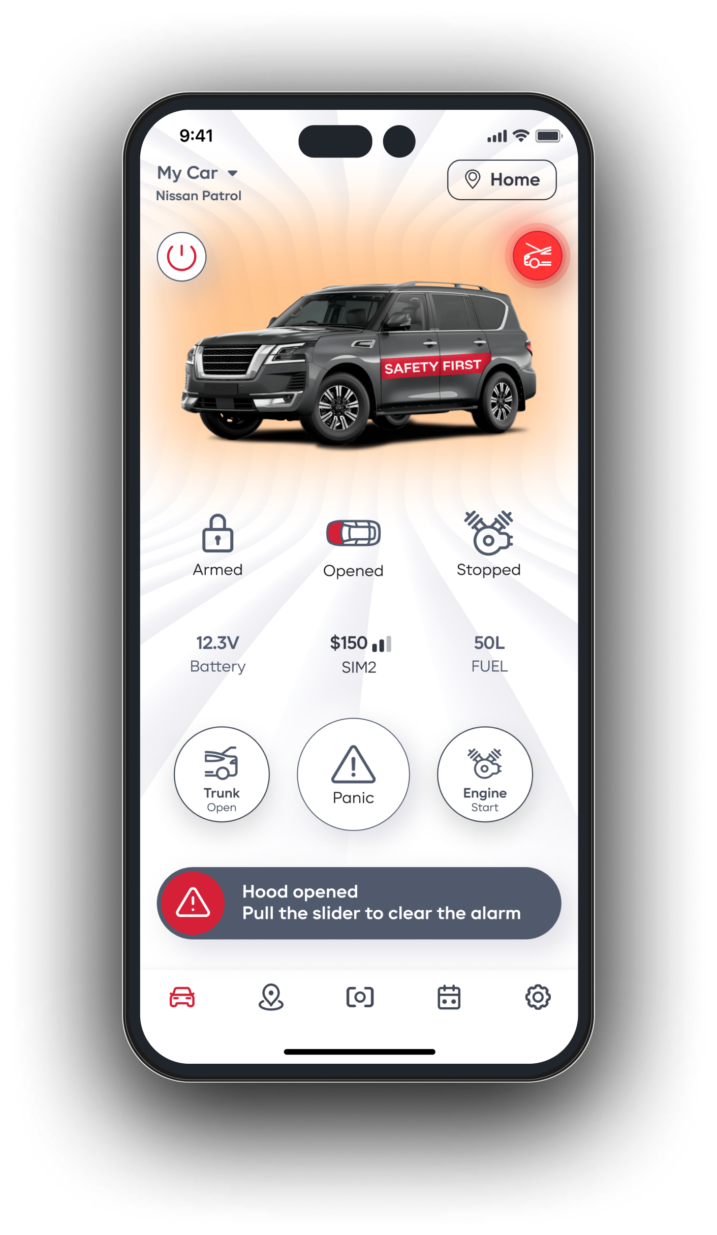 The additional under-hood blocking module, along with hood locks, makes it impossible to start the engine or access the hood, even if the thief finds and disables the central unit and the additional blocking relay