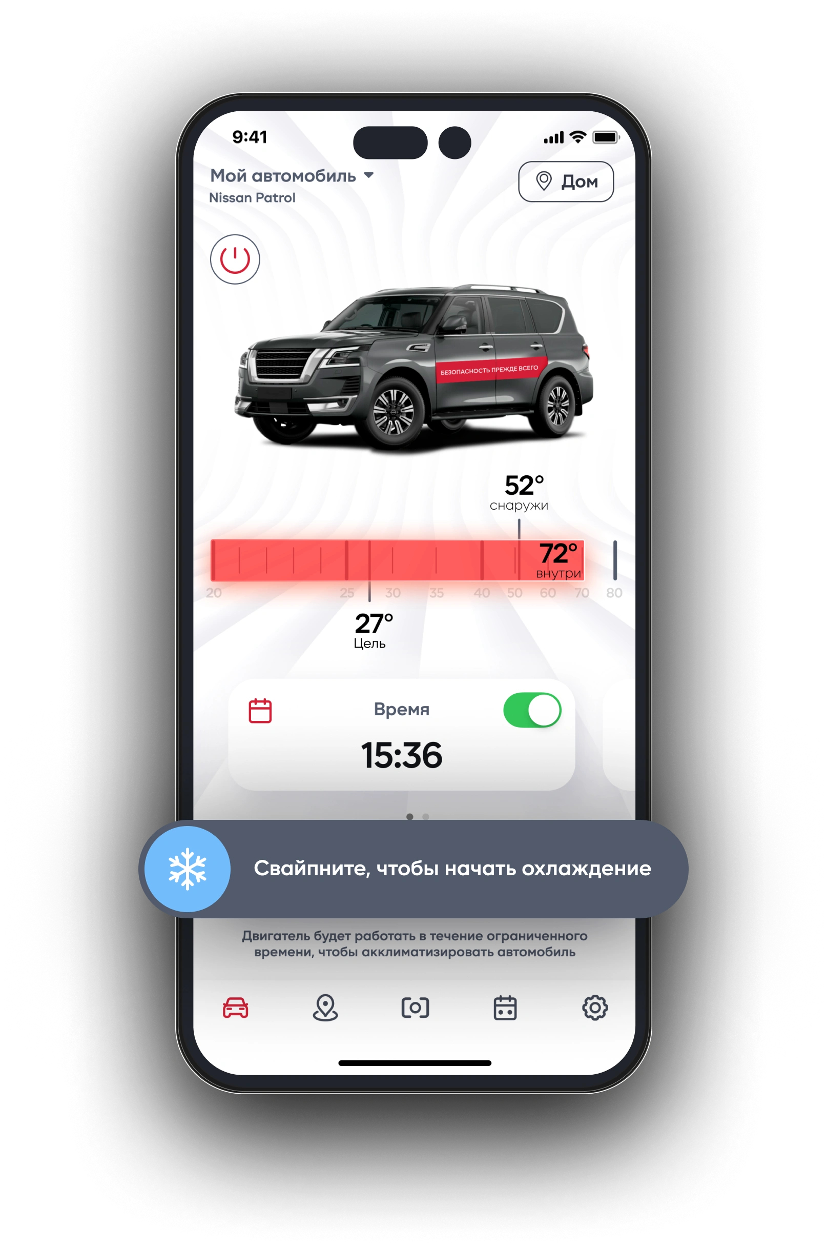 Нажмите Readycar в приложении, и ваш автомобиль запустит кондиционер