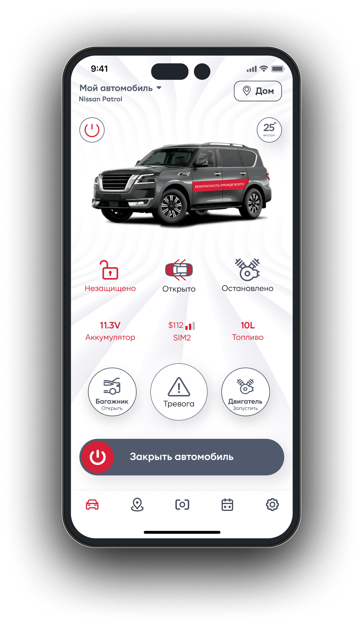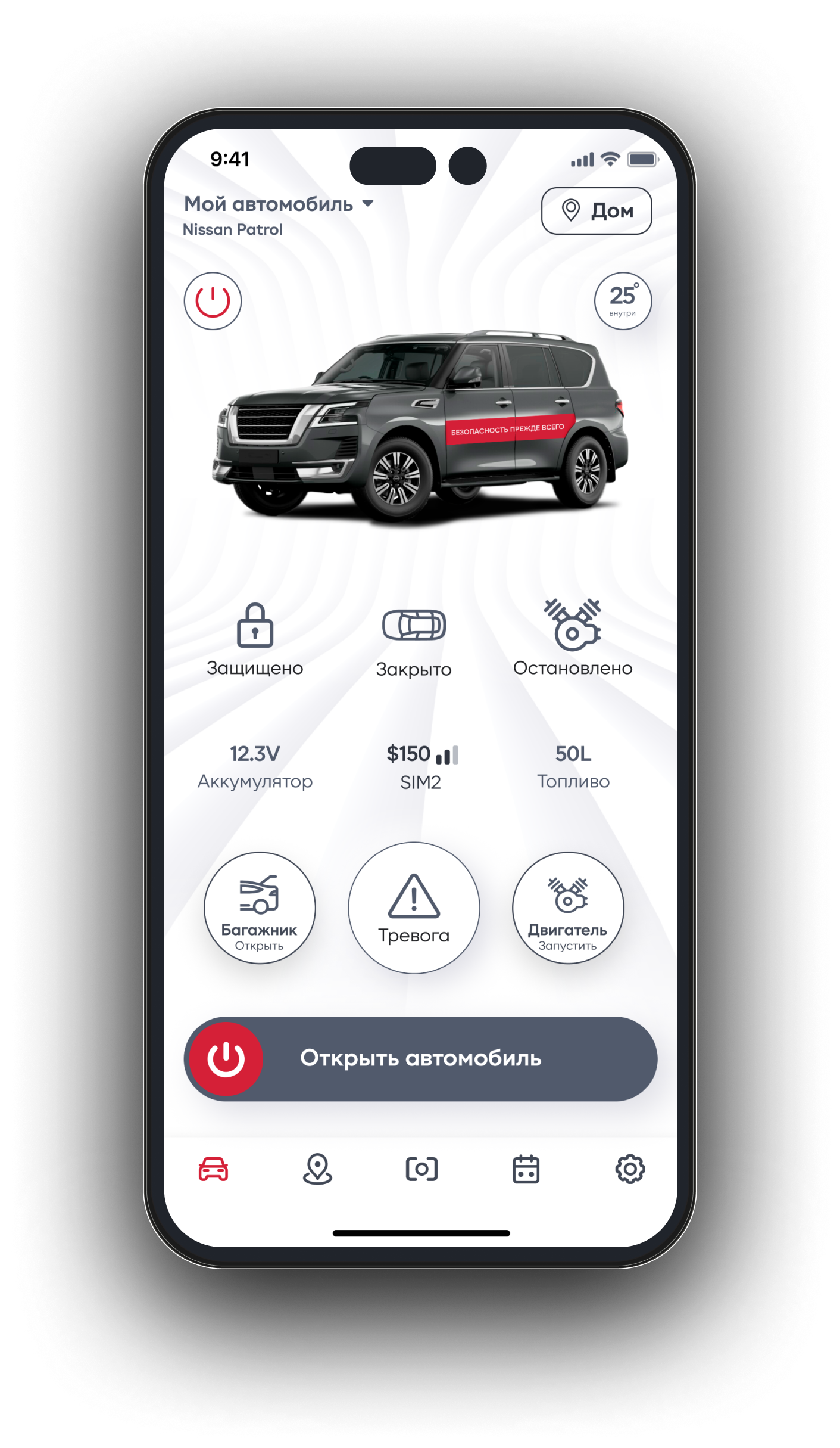 - Если в вашем автомобиле установлен предпусковой подогреватель двигателя — вы сможете управлять ним из приложения системы